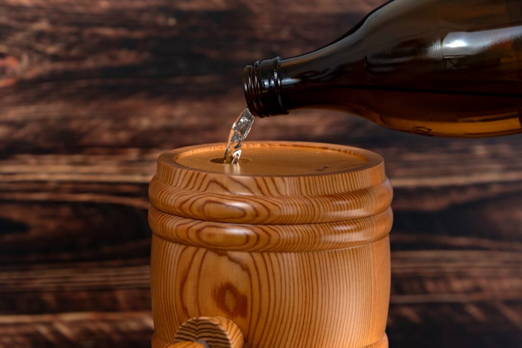 まずは、酒樽の中にお好みのお酒を入れて下さい。