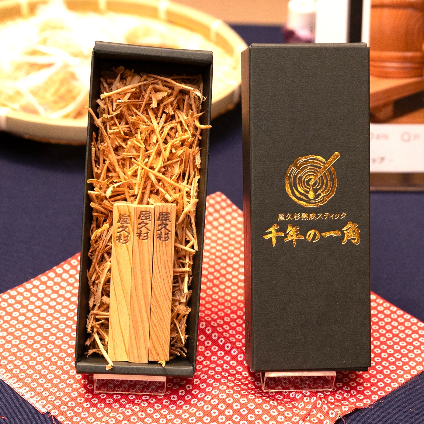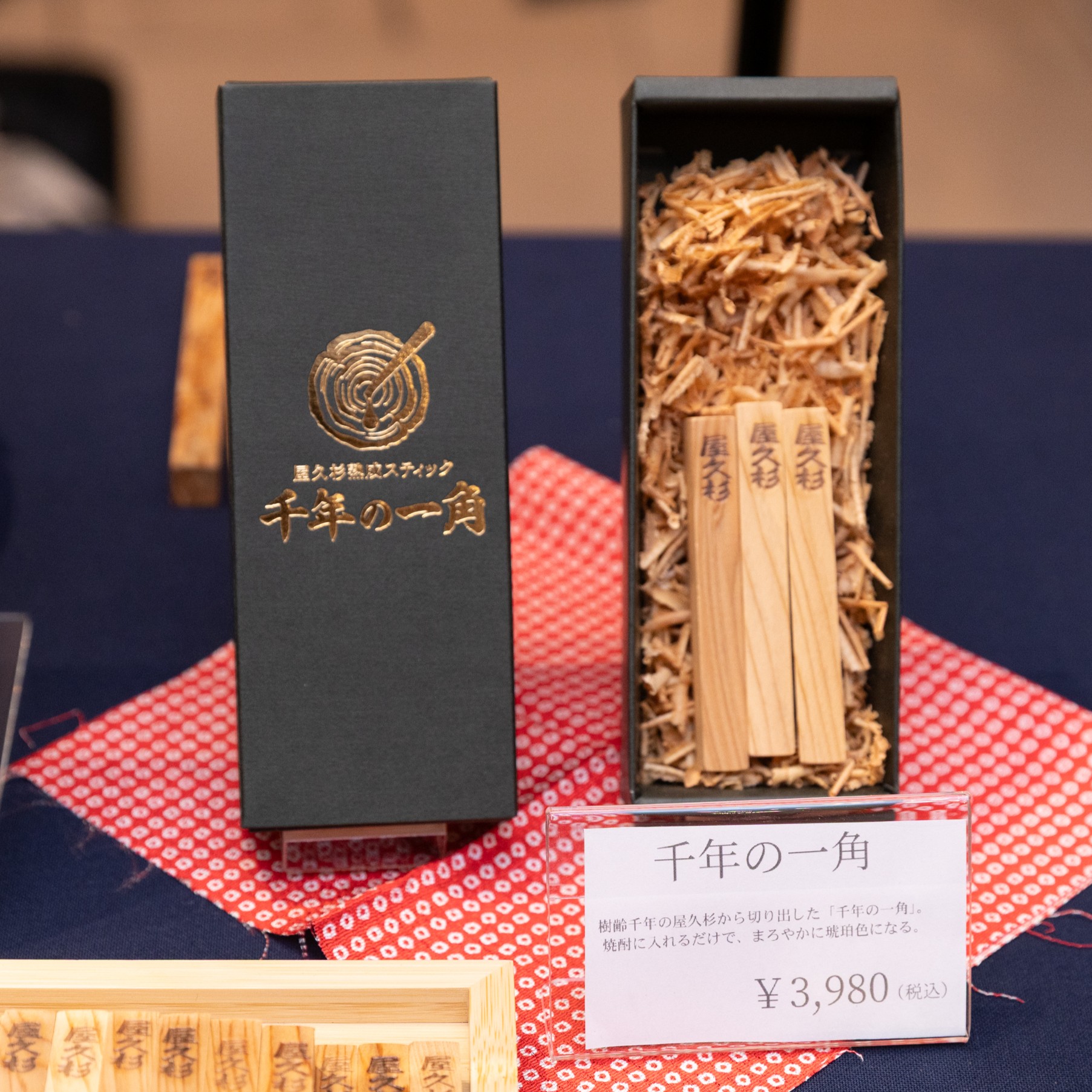 人気を博した新商品、屋久杉熟成スティック「千年の一角」です。